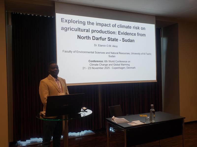 Dr. Elamin Akoy, affiliated with the Sudan-Norway Academic Cooperation (SNAC), recently participated in the 6th World Conference on Climate Change and Global Warming in Copenhagen. This international conference provides ample opportunities for learning and networking for scholars working on climate change from different perspectives. Akoy presented his research on climate risk and agricultural production in North Darfur.