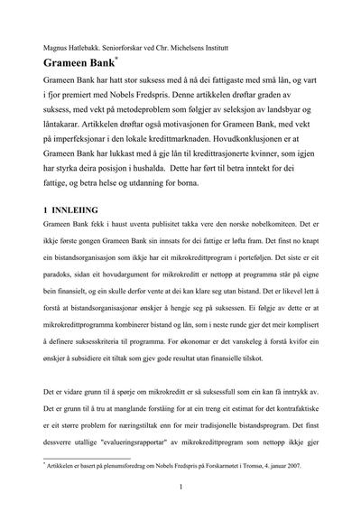 Om Nobels Fredspris 2006: Grameen Bank