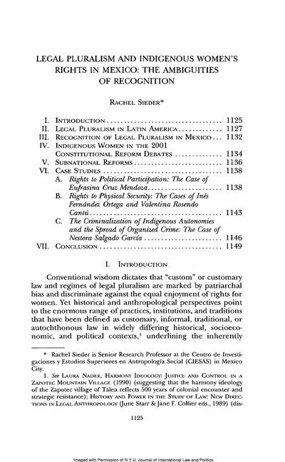 Legal Pluralism And Indigenous Women’s Rights In Mexico: The Ambiguities Of Recognition