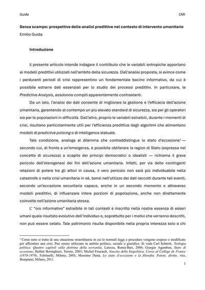 Senza scampo: prospettive delle analisi predittive nel contesto di intervento umanitario