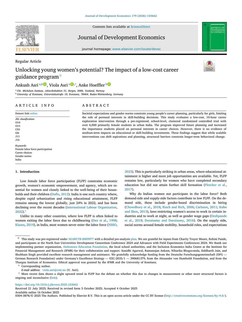 Unlocking young women’s potential? The impact of a low-cost career guidance program