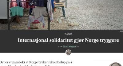 Les mer her: https://agendamagasin.no/debatt/internasjonal-solidaritet-gjor-norge-tryggere/